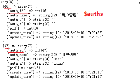 技巧一:取出所有的权限:并且以auth_id为每个元素的下标。
