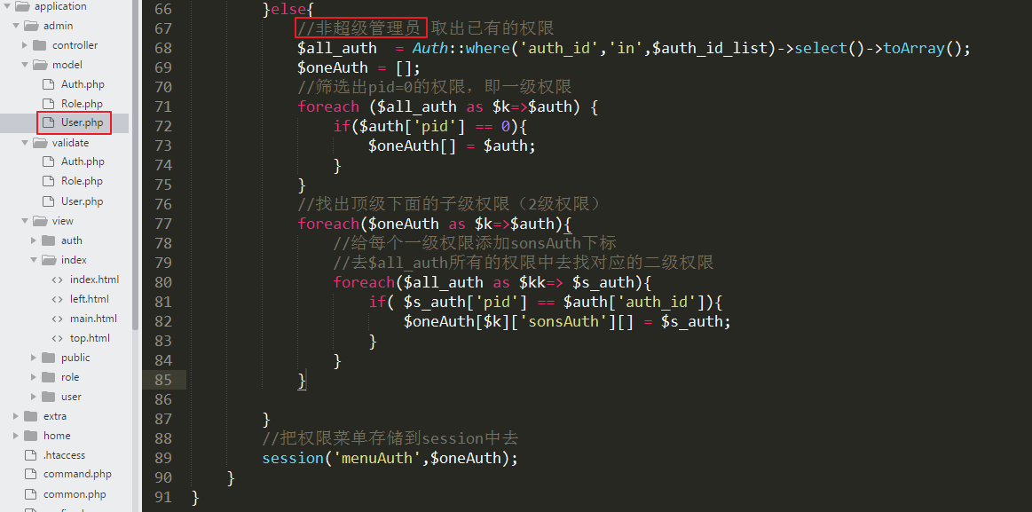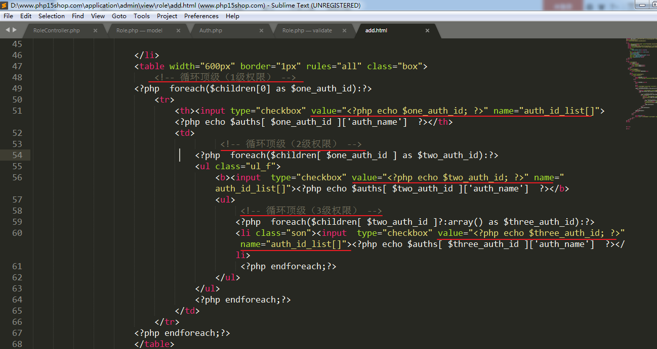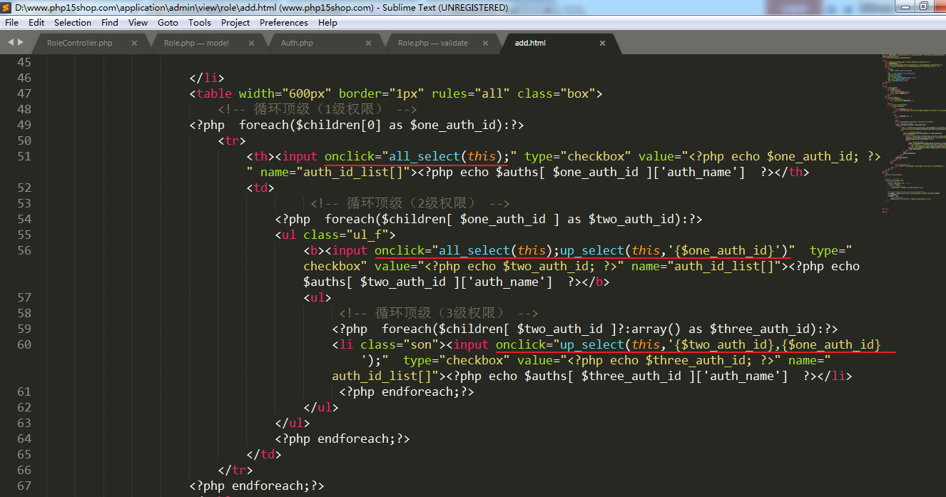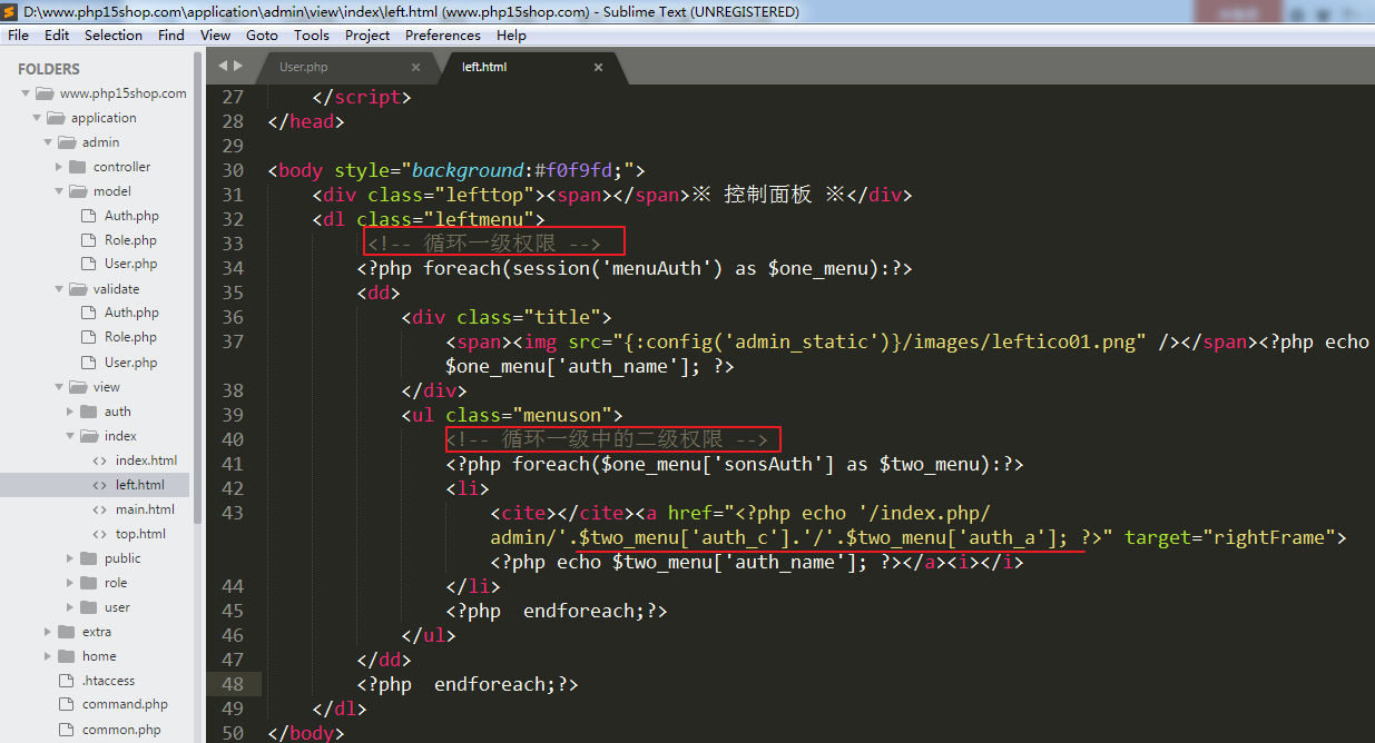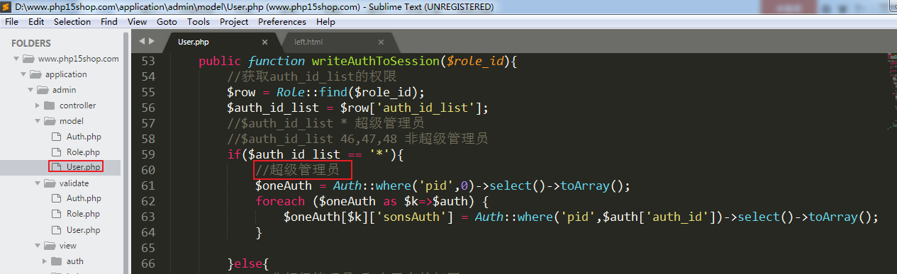TP5 商城(二)RBAC、权限增删改查、角色增删改查、不同用户显示不同后台、权限防翻墙