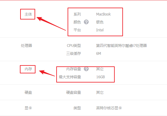 属性分组:有些属性是可以归为一组的,参考京东电脑商品: