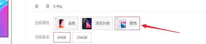 单选属性: 指买商品的时候,可以选择一个属性,不同的属性价格不一样