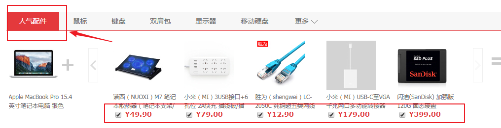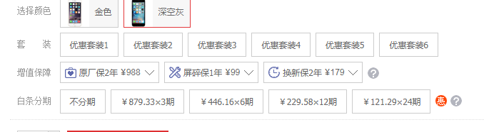 复选属性:可以选择多个,一般买商品的附加配件都是复选的。