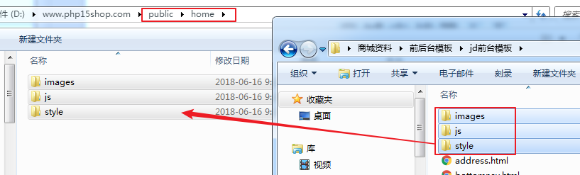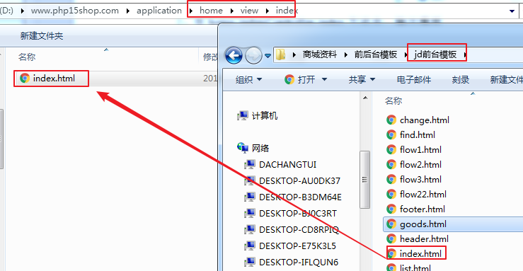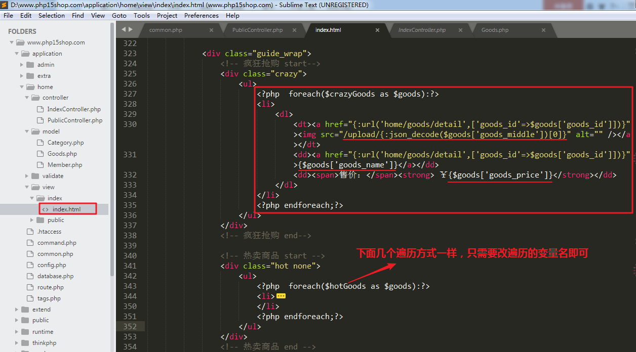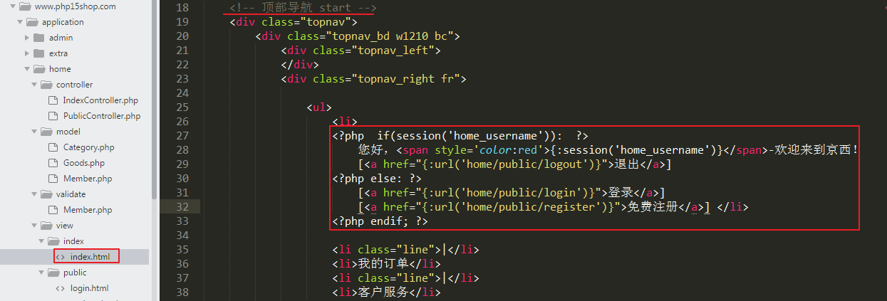 - 复制前台的index.html模板到/home/view/index/目录下,并修改进行静态资源目录