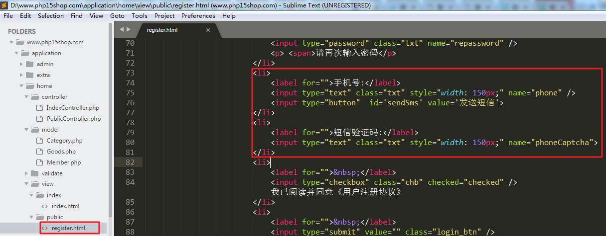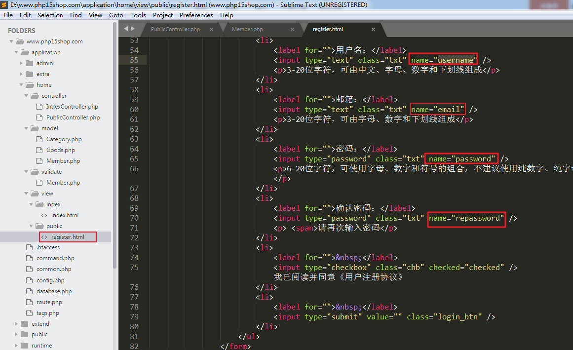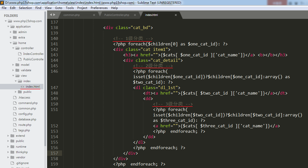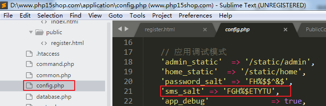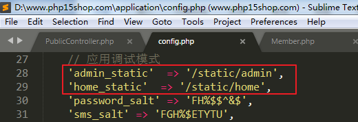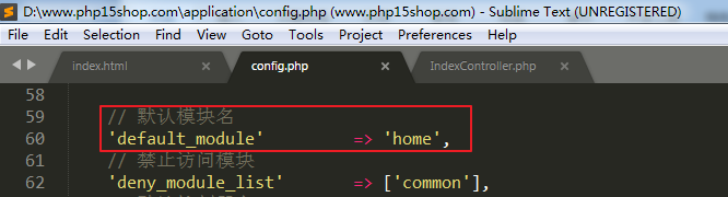 注:开发前台先把默认访问的模块改为Home,修改config.php配置