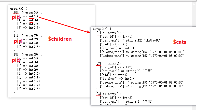 - 根据pid进行分组,把具有相同pid的值归为同一个组,方便模板中循环。