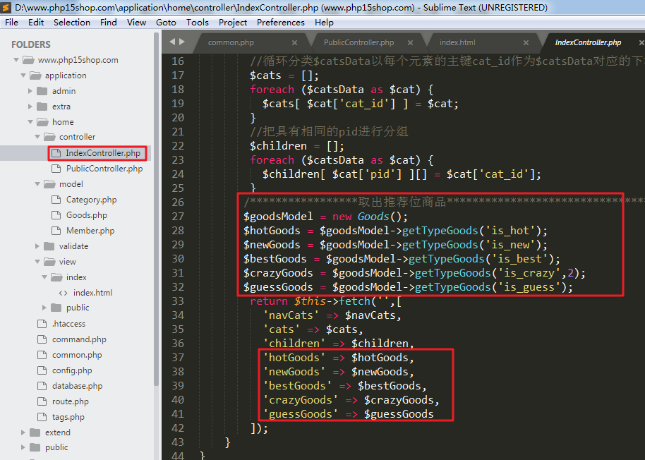 1、在home-IndexController-index方法中取出对应导航栏分类数据。