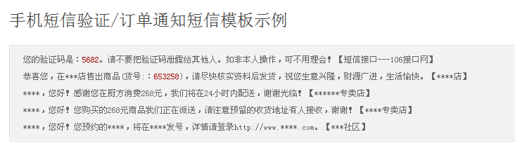 主要用于用户注册、身份确认、重要资料修改的短信认证以及生成订单成功短信的通知等。