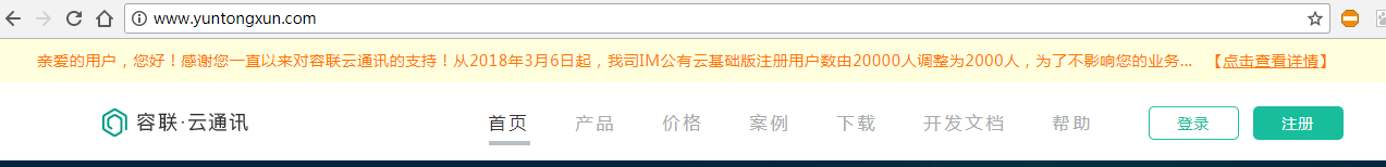 如下是容联云通讯(http://www.yuntongxun.com/ )的界面