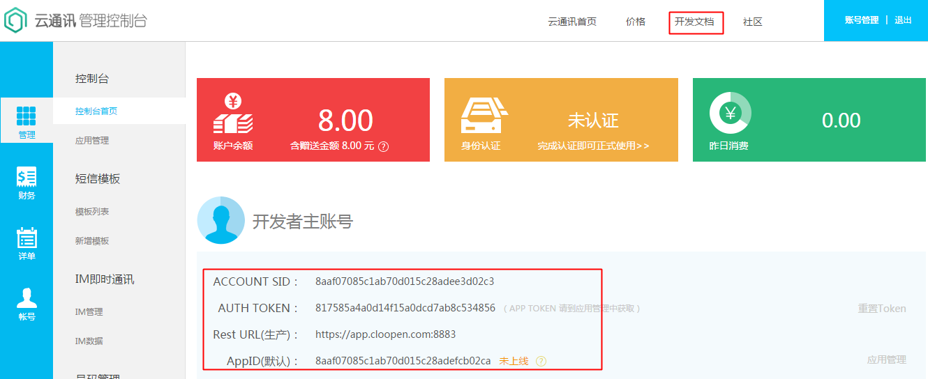目前国内有很多这方面的短信提供商,只不过收费标准和稳定性都不一样。所以我们优先选择能免费体验的平台 ,比如容联云通讯(官方网址是:http://www.yuntongxun.com/)。
