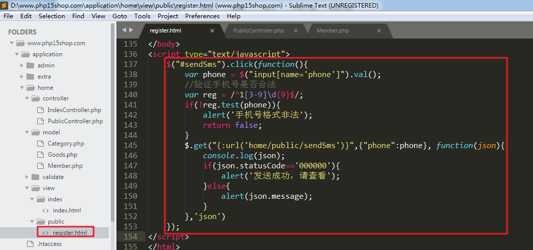 - 给id=sendSms绑定单击事件,发送ajax请求,进行短信的发送