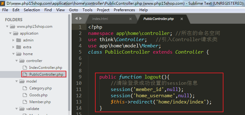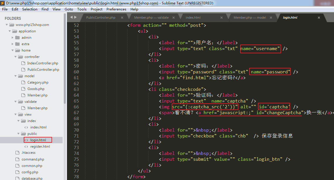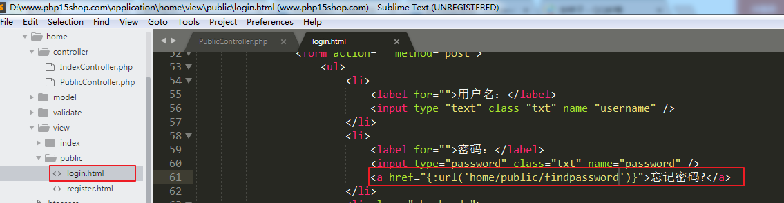 4、在home-publicController-login方法中完成登录模板的展示和登录的逻辑实现