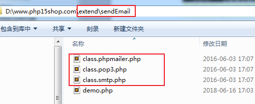 - 把上面测试通过的发送邮件的sendEmail复制到[应用目录]/extend目录中