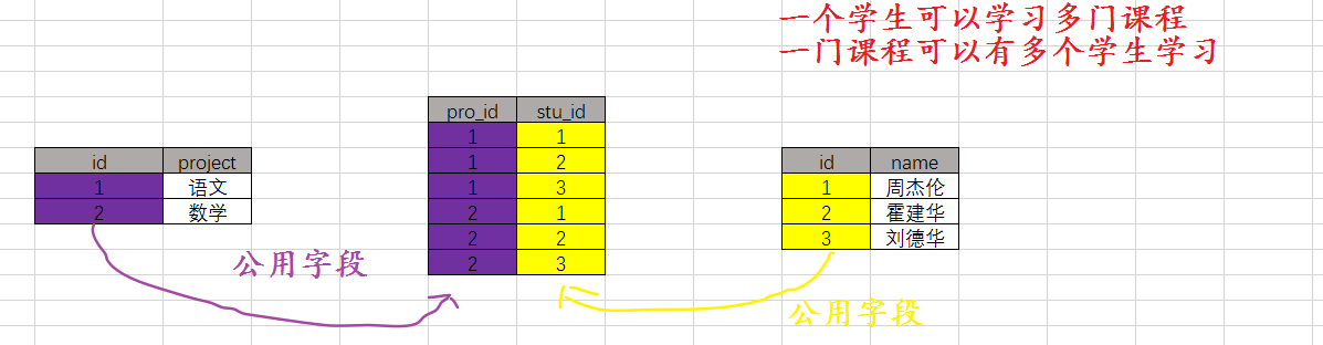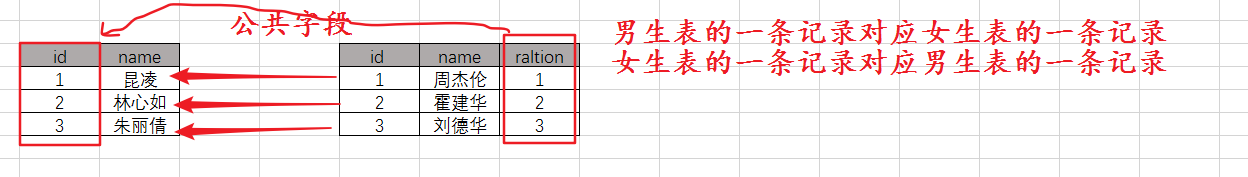 公用的字段来关联表