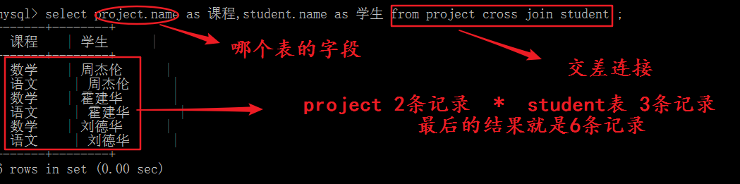 语法实现: select ….from A cross join B……….