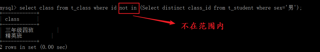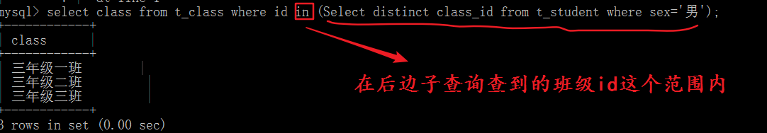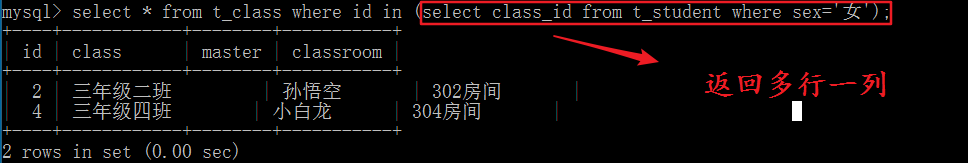 select * from t_class where id in (select class_id from t_student where sex=’女’);