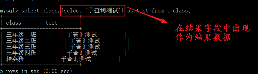 子查询返回的结果是一个数据,一行一列