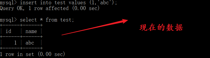 在test表中添加测试数据