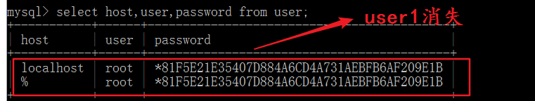 Drop user 用户名@’主机地址’;