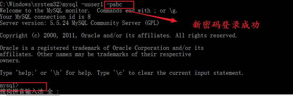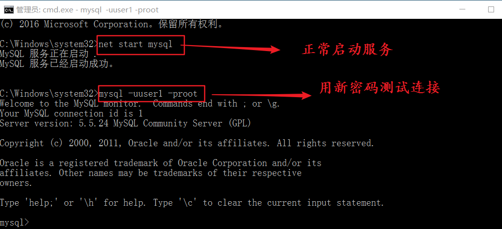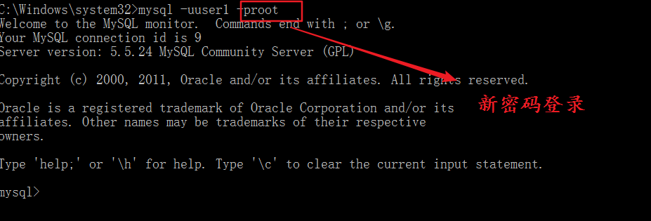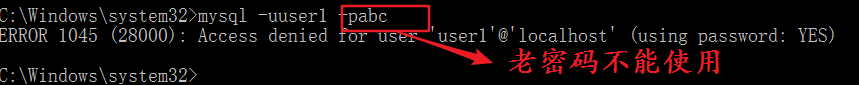 测试使用老密码登录(注意先关闭cmd ,在打开cmd)