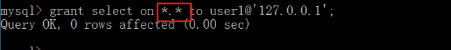 grant select on *.* to user1@’127.0.0.1‘;