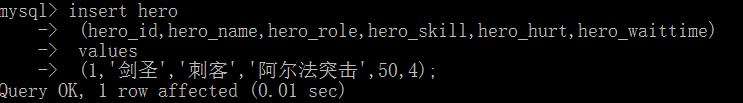 insert into test1 values(‘a’);