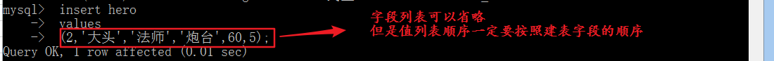 • 扩展:省略字段列表插入表数据