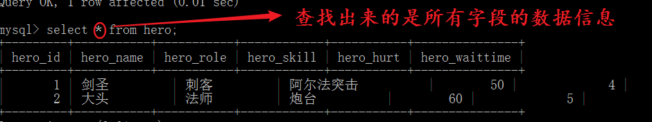 说明:*代表所有的字段