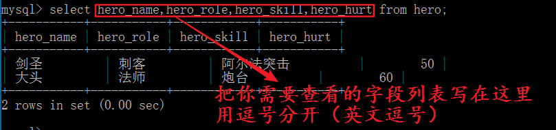 语法: select 字段1,字段2,字段3,字段4…… from 表名;