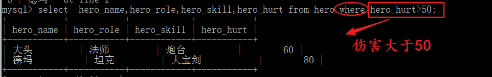 • 查看技能伤害大于50的英雄信息
