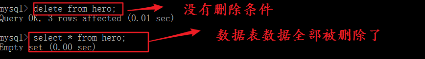 注意;这里删除一般都需要制定删除的条件,如果不指定删除的条件那么整张表的数据都会被删除