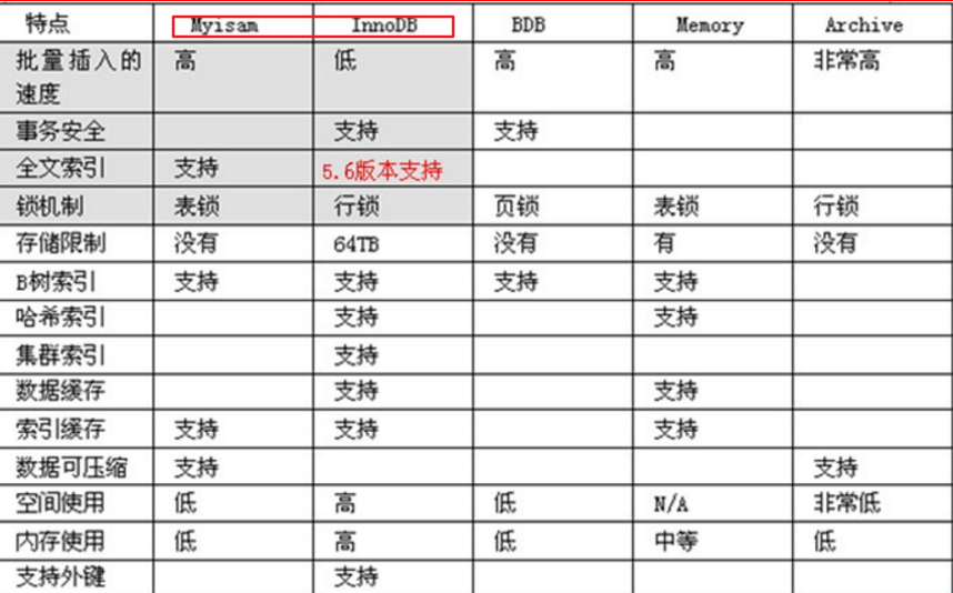 常用的数据库引擎有 innodb myisam