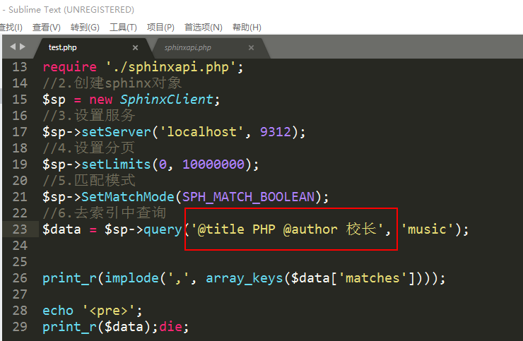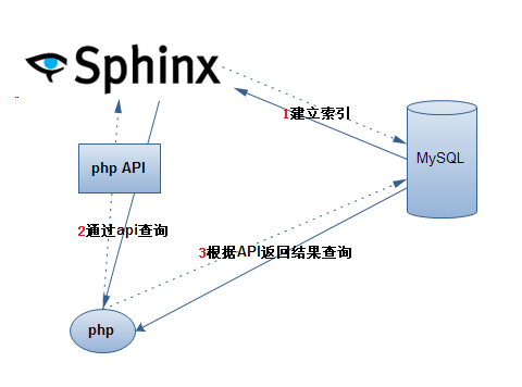 - 步骤2:php根据用户搜索的关键词去sphinx中匹配,获取对应的数据id(编号)