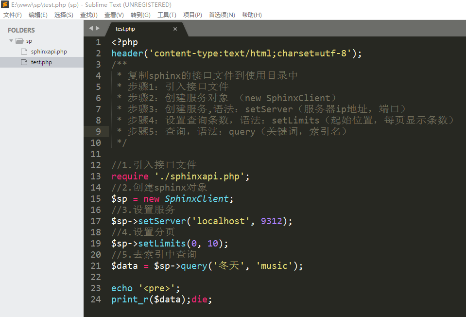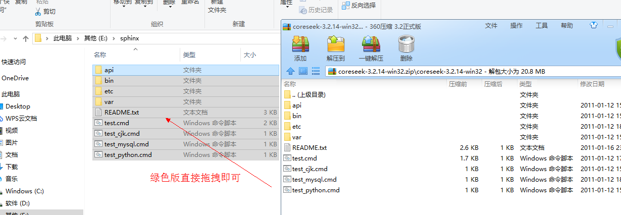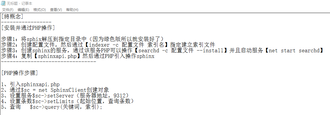 - bin\searchd.exe 服务端(后期php操作服务器必须启动)