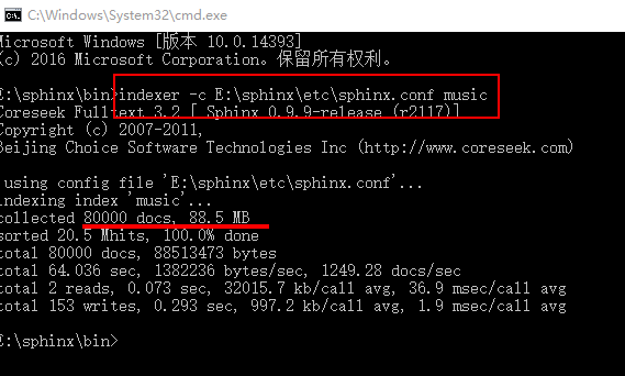Sphinx创建索引的速度为:创建100万条记录的索引只需 3~4分钟,创建1000