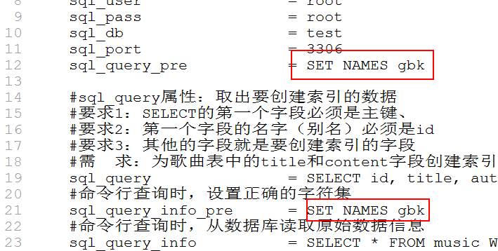 - 步骤1:将etc/csft_mysql.conf复制并更名为sphinx.conf