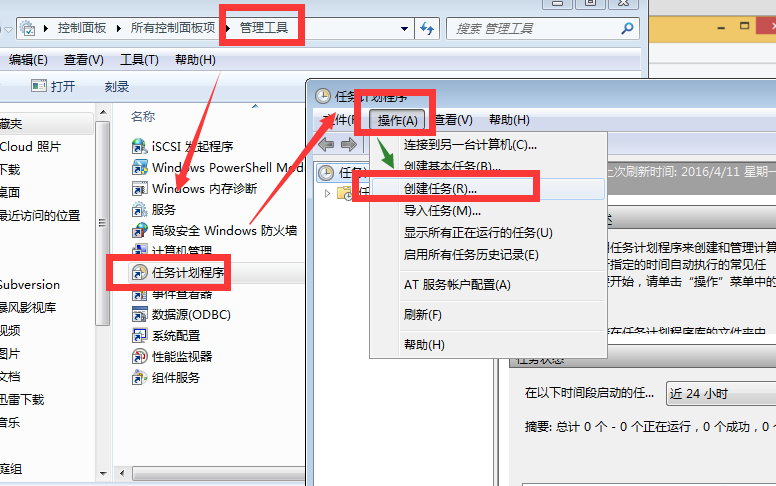 步骤2:把这个xxx.bat文件添加到windows系统上的“计划任务”让系统定时执行这个文件中的两个任务。