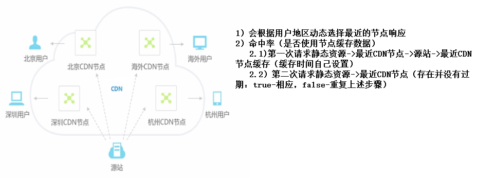 - 说明:CDN服务器供应商在全国各个城市都有一个机房,用于后期缓存静态资源,