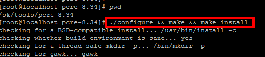 shell> cd pcre-8.34 #进入解压目录