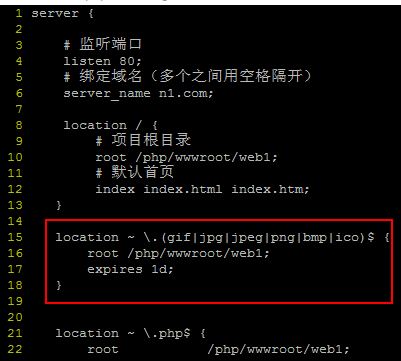 对nginx 来说,实现的方法很简单,只要在location段中,使用 expires 就可以了