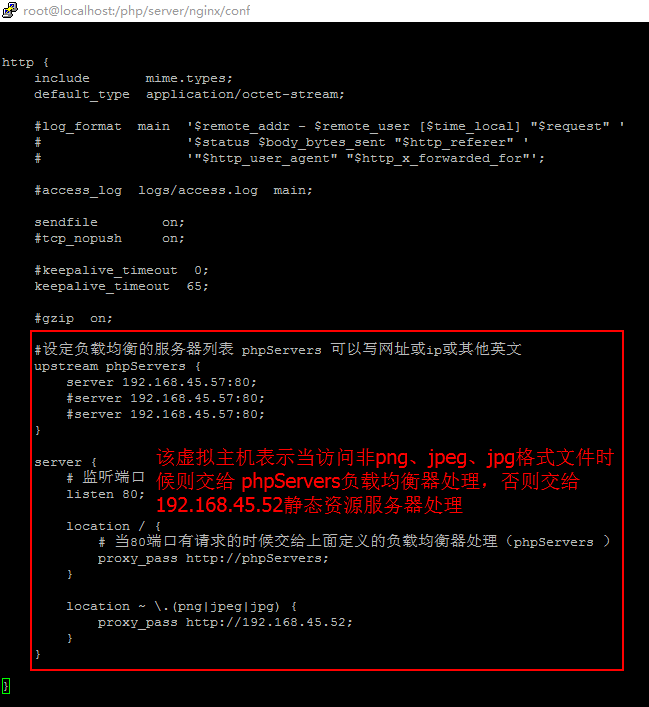 步骤1:打开负载均衡服务器主配置文件(vi /php/server/nginx/conf/nginx.conf)