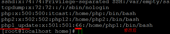 php: x: 500: 500: itcast: /home/php: /bin/bash
