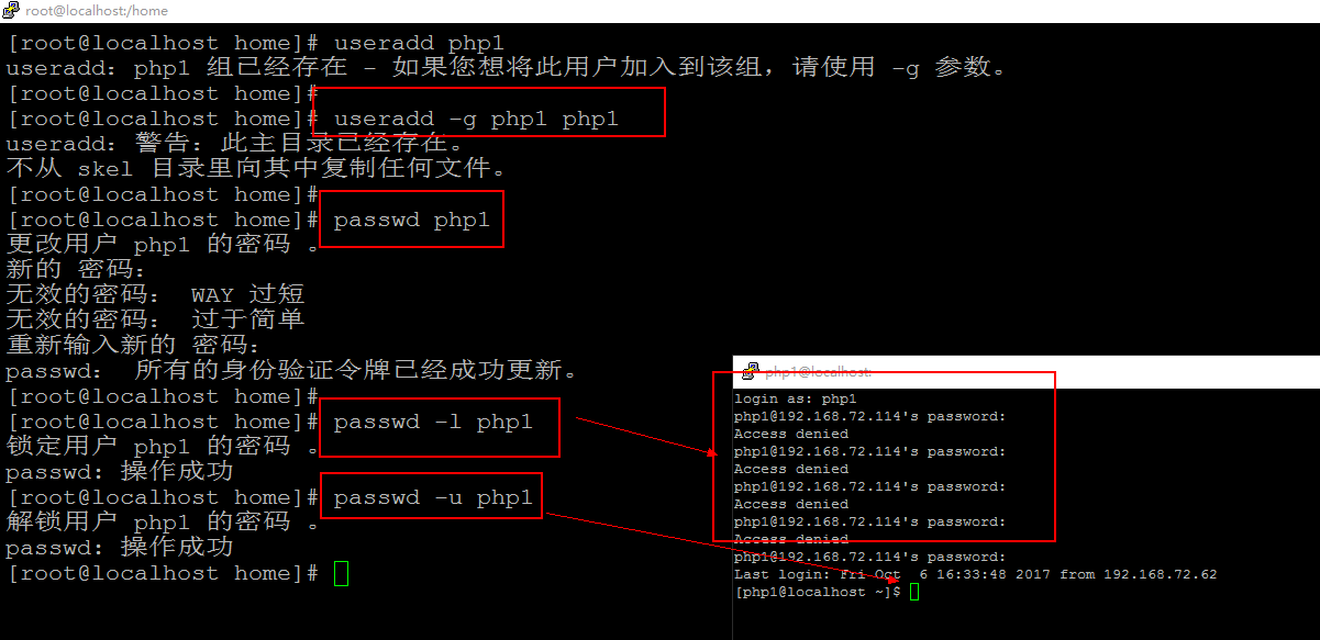 > #删除用户: userdel -r 用户名 (-r表示删除用户家目录)