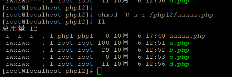 #语法2:chmod -R {augo}{=-+}{wrx},…,{augo}{=-+}{wrx} 待授权的文件