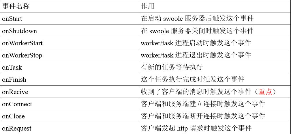 2.7. Swoole支持的常用事件列表 5