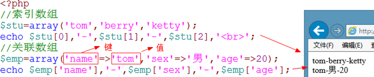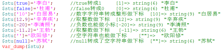 - 关联数组:元素的值和下标没有位置上的关系。关联数组中元素顺序与下标无关。