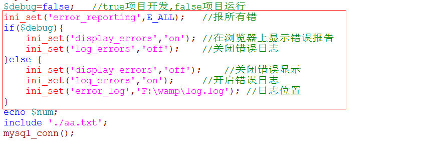 echo ‘将错误记录在日志中<br>’;