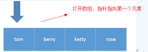 - 默认情况下打开一个数组,指针指向数组的第一个元素