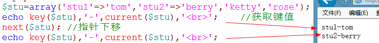 作用:返回当前的键值并且指针向前移动一位,如果到了数组的末端返回false