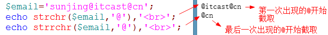 - strrpos():查找子字符串在字符串最后一次出现的位置